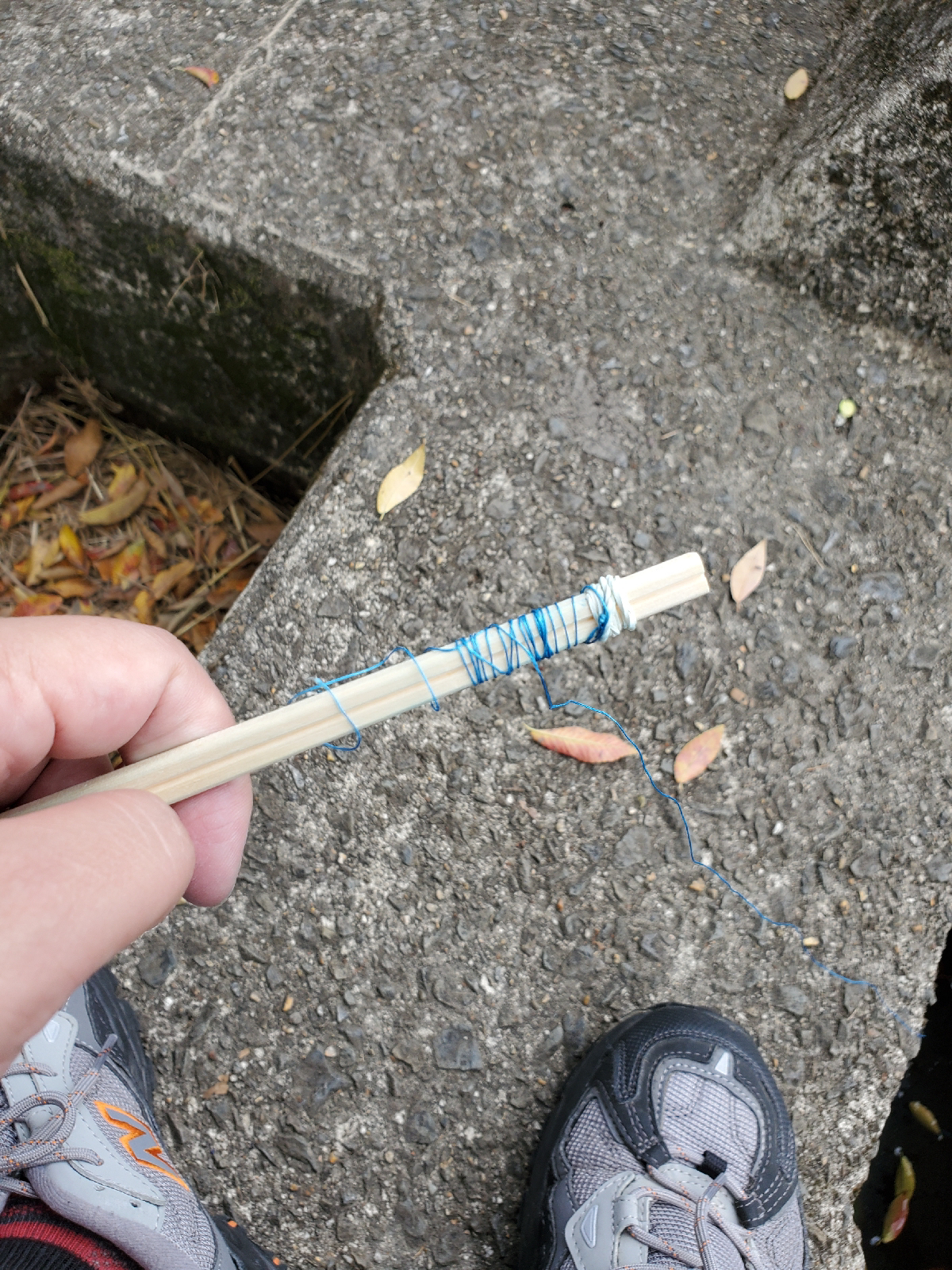 深北緑地へ甥っ子と遊びに行った。 近くのコンビニでスルメを購入。 タックルは極めて簡素に、割り箸に家にあったpe1.2号とした。 14時00分~15時00分で、ザリガニ釣りをしたが2バイト0ザリ…